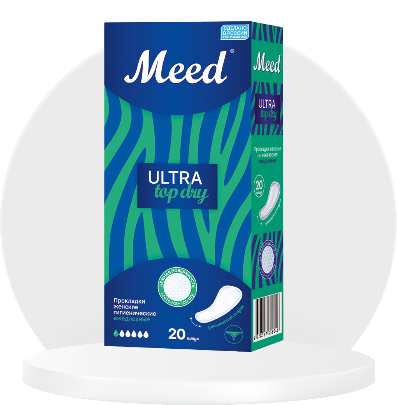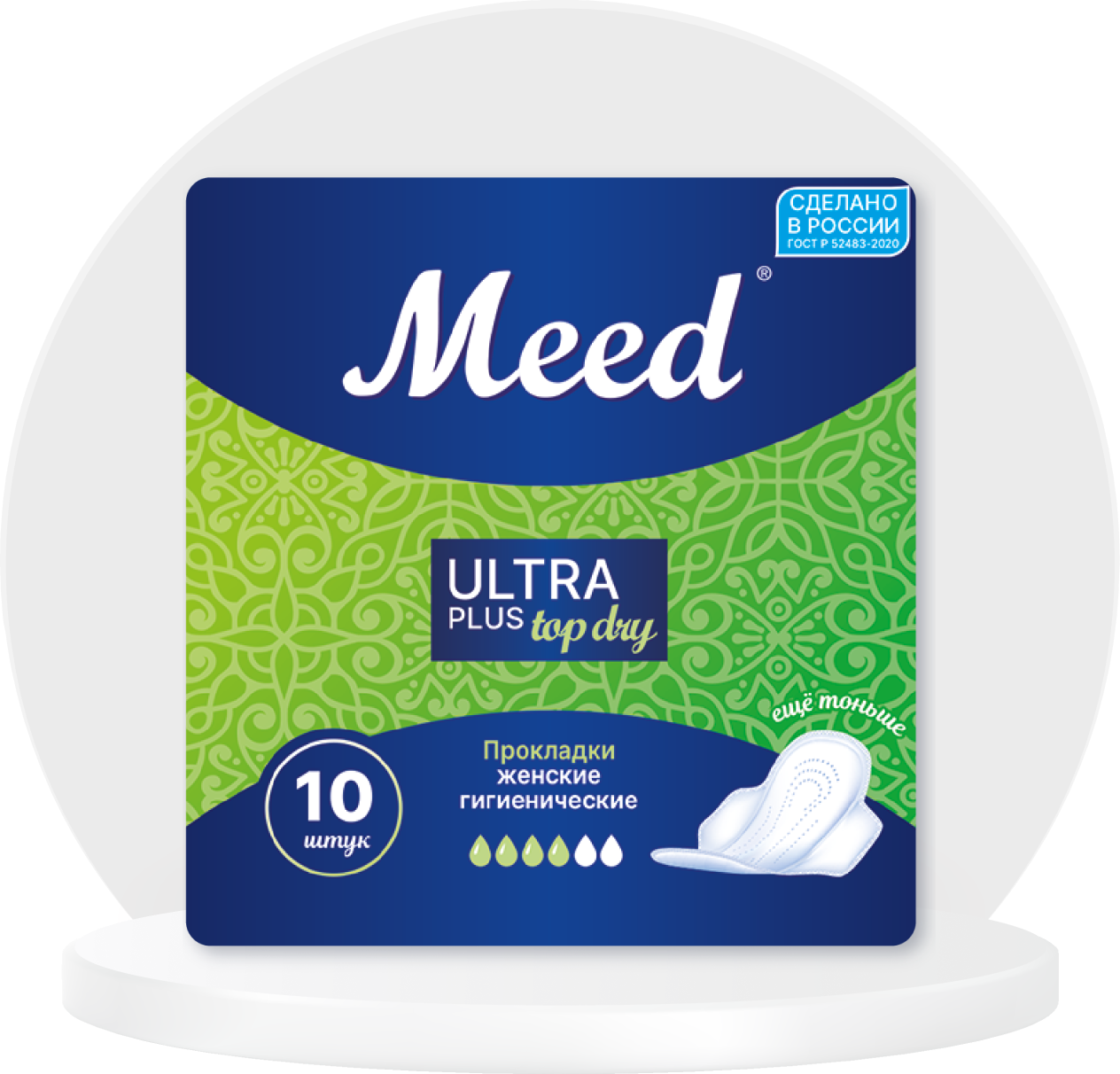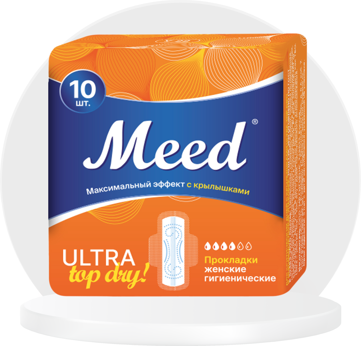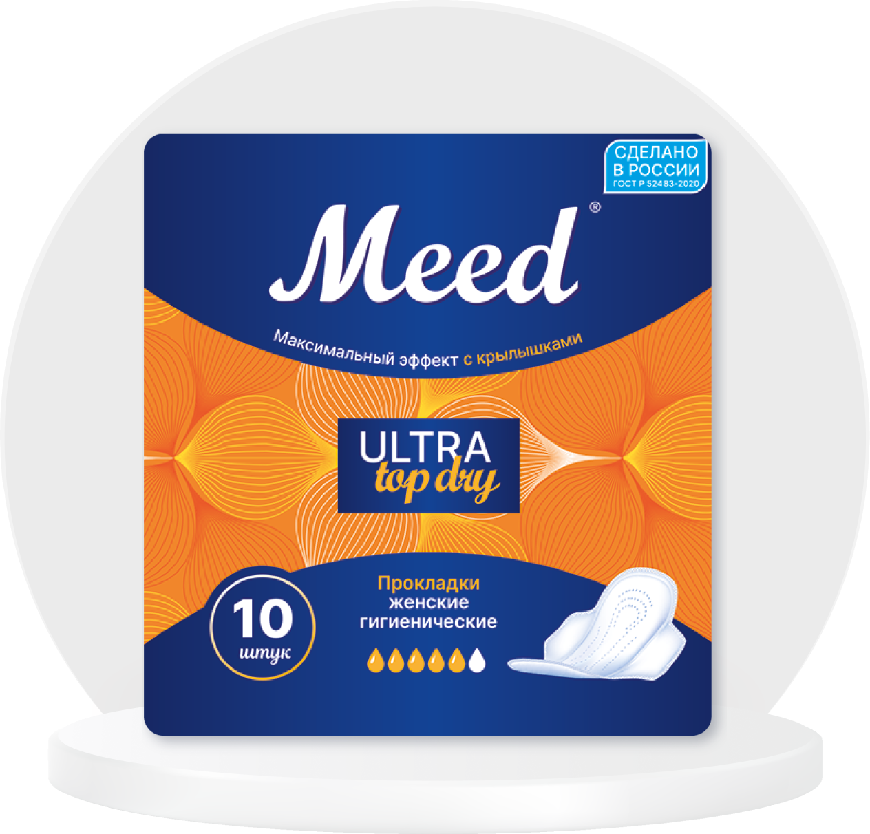 Прокладки женские гигиенические «Meed» для критических дней, Эффект, с крылышками, ТОП ДРАЙ